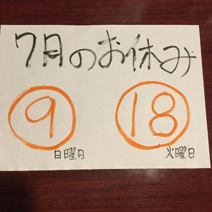 こんにちは わさび居酒屋あな蔵です。今月のお休みです。